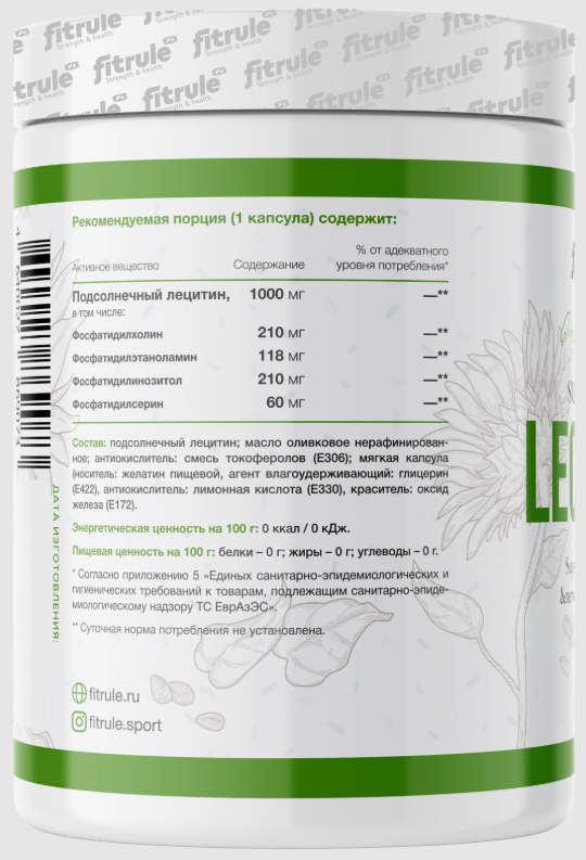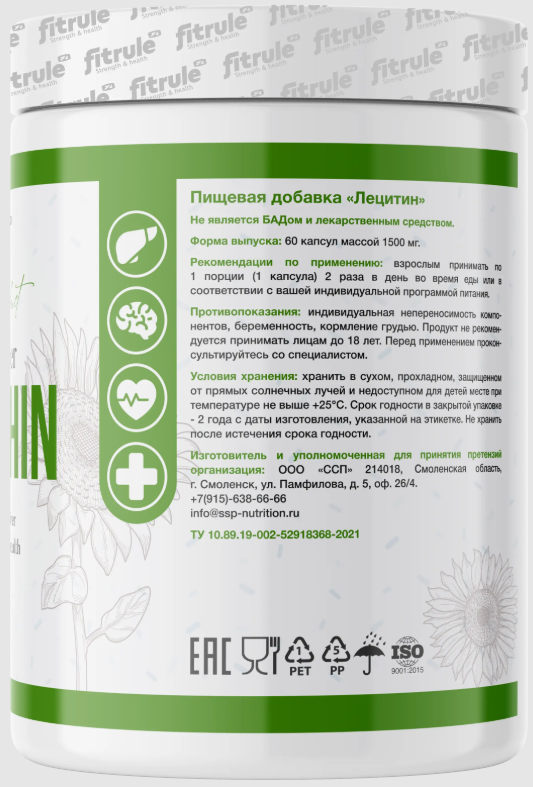 Fitrule Lecithin – это лецитин, полученный из подсолнечника. Лецитин является одним из основным фосфолипидов, который необходим организму для выполнения ряд функций.