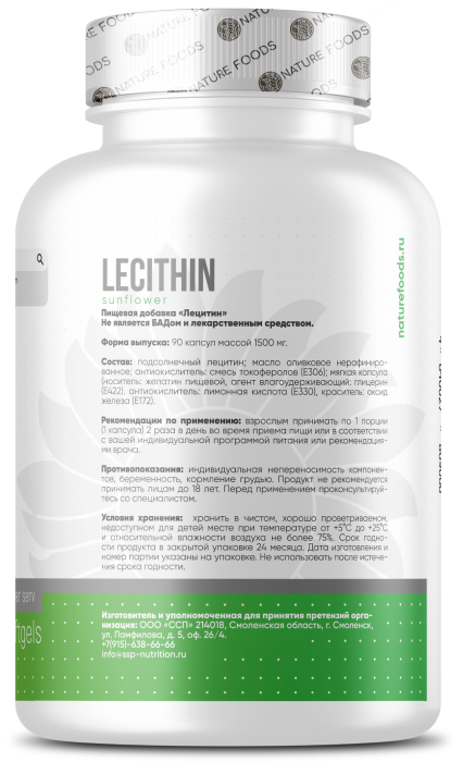 Лецитин - источник незаменимых фосфолипидов на основе натурального лецитина подсолнечника. Фосфолипиды защищают клетки печени и принимают участие в их восстановлении, способствуют регулированию уровня холестерина. Кроме того, холин поддерживает работу почти всех отделов головного мозга, значительно влияя на их продуктивность.