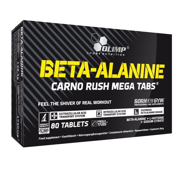 Продукт Beta-Alanine Carno Rush Mega Tabs от Olimp – это продукт в первую очередь для физически активных людей для использования во время силовых тренировок и тренировок на выносливость. Он поможет преодолеть накатывающую усталость и завершить тренировочную сессию. Ведь основным его компонентом является бета-аланин с транспортной системой для более эффективного всасывания, который участвует в синтезе карнозина – буфера молочной кислоты, которая в избытке приводит к преждевременному утомлению. Еще карнозин обладает антиоксидантными свойствами и не дает формироваться состояниям, связанным с пагубным воздействием свободных радикалов.