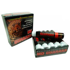 Гуарана MD - высоко-углеводный энергетический напиток во флаконах на основе натурального экстракта гуараны с витаминами и минералами. Стимулирующее действие напитка обусловлено высоким содержанием кофеина.
