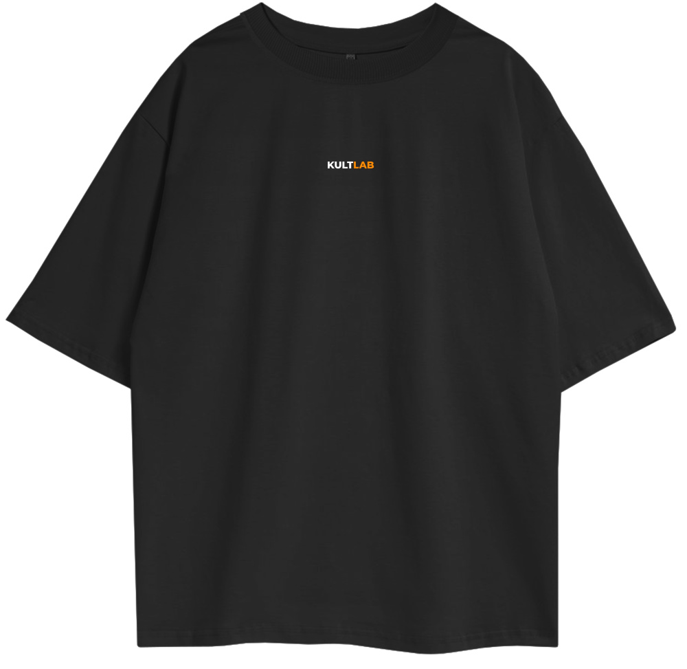 Kultlab Мужская футболка Oversize Merch, чёрная - бело-оранжевая