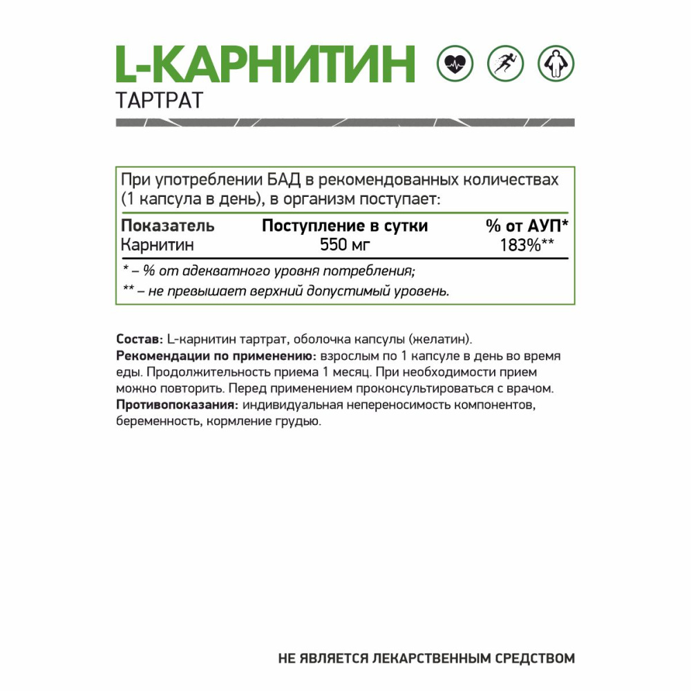 L-Карнитин тартрат - биологически активное вещество, которое участвует в транспортировке жирных кислот через клеточные мембраны. Оно помогает жирным кислотам из жировых депо транспортироваться в мышечные клетки, где они и превращаются в энергию. Его основная функция — улучшение энергетического обмена и улучшение всех метаболических процессов в организме. Л- Карнитин стимулирует регенерацию клеток, жировой обмен, оказывает антиоксидантное, антигипоксическое, анаболическое действие.