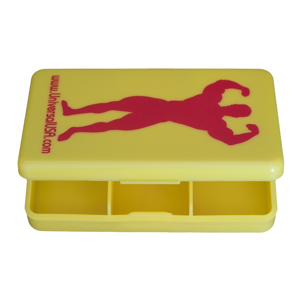 Пенал для таблеток меет 5 отделений для таблеток. Удобный в использывании. Теперь не нужно брать с собой на тренировку банку с аминокислотами или нести отдельно таблетки в кармане.