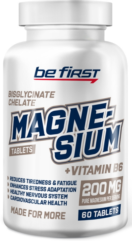 Витаминно-минеральный комплекс Magnesium + B6 от Be First призван поддержать результативность тренировок и помочь сохранить здоровье. От магния зависит выработка энергии в клетках, нервно-мышечное взаимодействие,