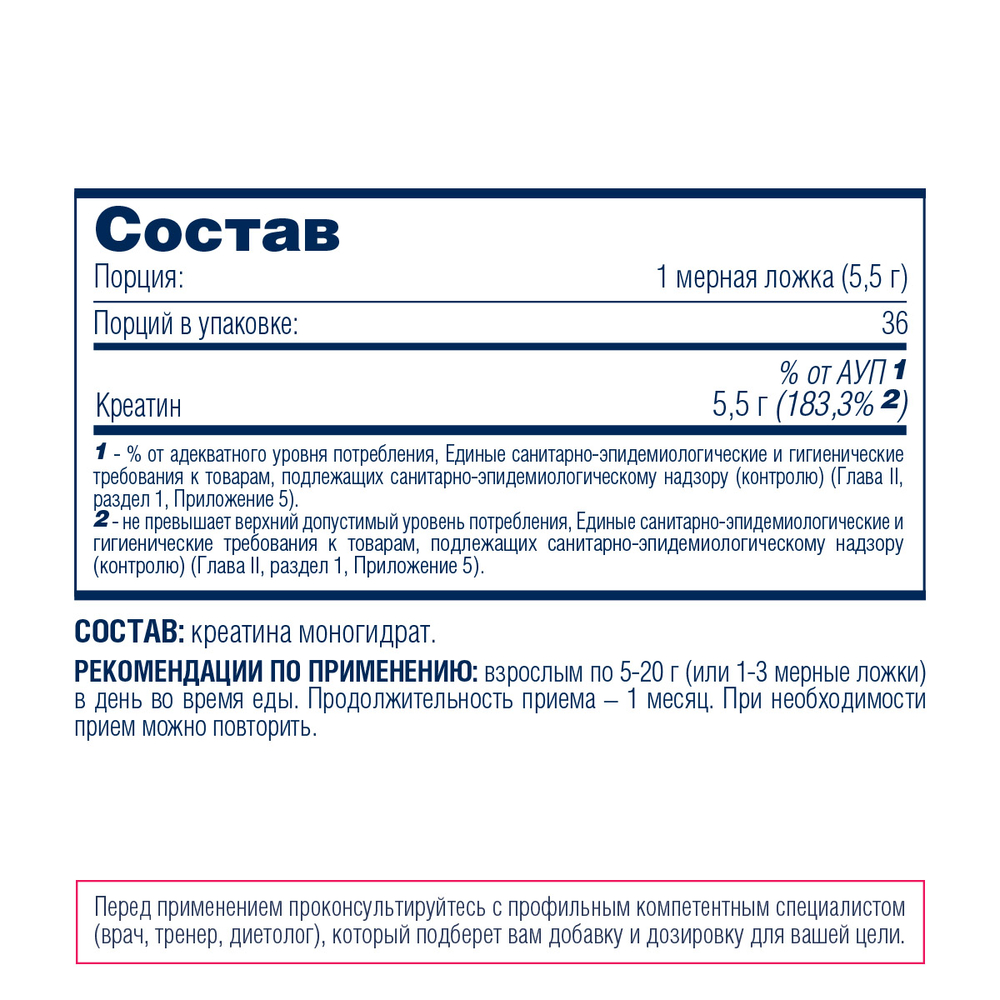 Be First Creatine Monohydrate Powder является традиционной формой креатина - моногидратом, который широко применяется в спорте уже около 30 лет. Креатин позволяет спортсмену работать немного больше, чем обычно, как в плане взрывной силы, повышая силовой максимум, так и в плане силовой (анаэробной) выносливости, повышая количество максимально возможных повторений. Это такой уровень интенсивности нагрузки, при котором напряженная мышечная работа может продолжаться 10-50 секунд до наступления полного отказа.