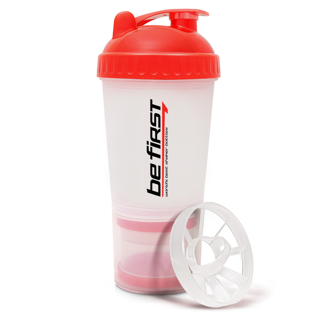 Спортивный пластиковый шейкер объемом 600 мл с дополнительными отделениями является самым оптимальным аксессуаром для спорта, фитнеса и кулинарии, объединяет в себе многофункциональность применения в повседневной жизни, во время путешествий, на отдыхе и на кухне, став превосходным помощником для человека, ведущего активный образ жизни. Он имеет поистине неограниченные возможности. При производстве этого шейкера компания использовала экологически чистый для человека пластик BPA FREE. В комплектации есть дополнительный контейнер, прикручивающийся ко дну шейкера, в котором можно транспортировать и хранить порошок, капсулы или таблетки, что делает его Вашим помощником на тренировке. В отличие от шейкеров других производителей, в нашем шейкере есть дополнительный контейнер в контейнере. В прикручивающемся контейнере вы можете хранить дневную порцию гейнера или протеина, а второй контейнер использовать отдельно как кейс для таблеток или капсул.