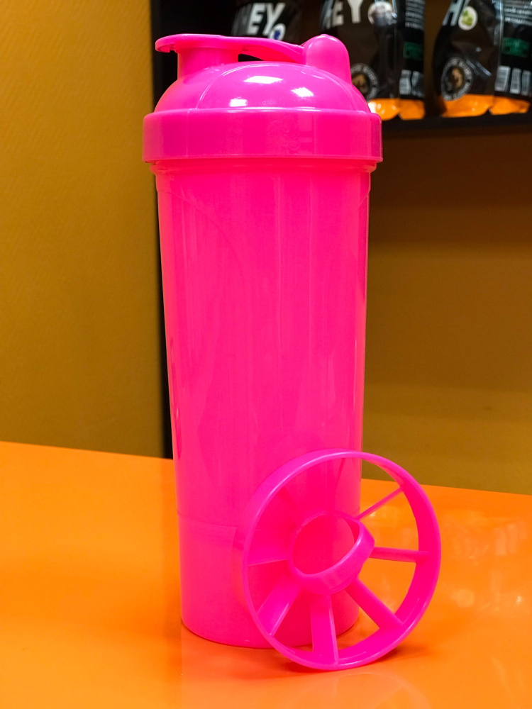 Компактный пластиковый шейкер с сеткой. Дополнительный контейнер для сыпучих продуктов.