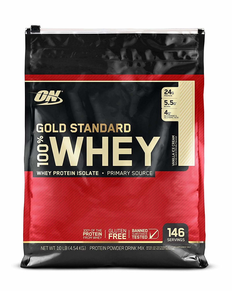 Optimum Nutrition Whey Gold Standard – 100% протеин, обладающий превосходными вкусовыми качествами и гарантирующий результат от приёма. Коктейль легко готовится в шейкере, путём смешивания сухого продукта с молоком или кипячёной водой. Благодаря уникальной формуле, идеально подходит для перегруженных мышц, способствует набору мышечной массы, снимает усталость и предотвращает появление жжения в мышцах в результате образования молочной кислоты. Купить продукцию Optimum Nutrition по выгодной цене предлагает интернет-магазин «КультЛаб».