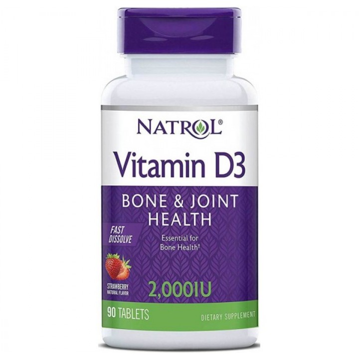 Витамин D3 Fast Dissolve от Natrol со вкусом клубники можно принимать в любое время, в любом месте. Не нужно воды. Таблетки быстро растворяются.