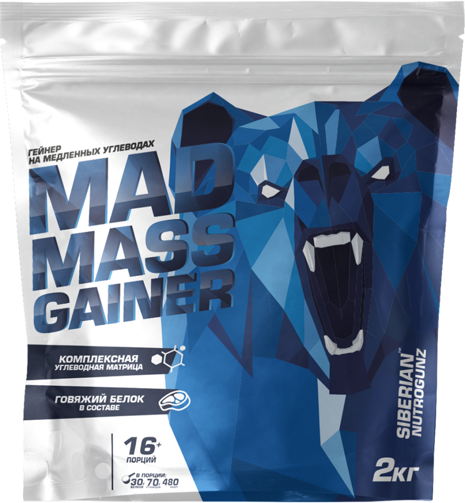 MadMassGainer - гейнер на основе комплексной углеводной матрицы, с большим содержанием белка и запатентованным комплексом ферментов Carbogen. Продукт, свободно конкурирующий с топовыми гейнерами западных брендов.