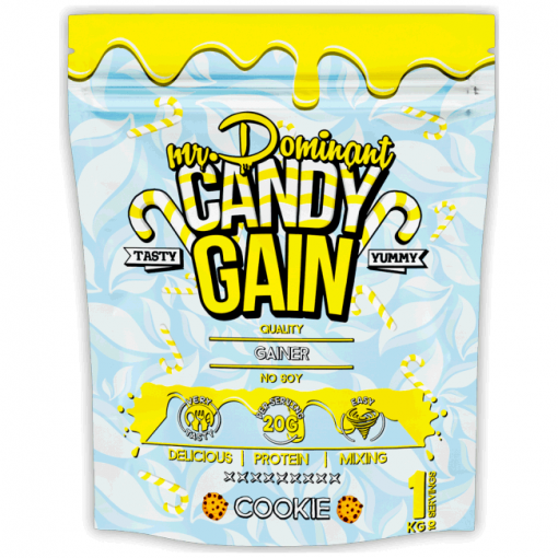 Гейнер Candy Gain, представленный на рынке российским производителем Mr. Dominant, отличает невысокая цена и отличное качество. Приятный вкус, удобная упаковка и наличие мерной ложечки сделает процесс употребления гейнера максимально комфортным. А яркая упаковка займет достойное место в любом шкафу.