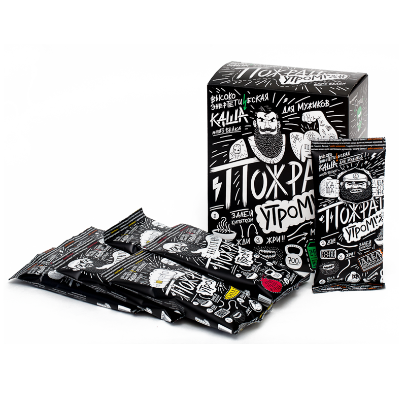 Энергии много не бывает! Каша для мужиков «Пожрать утром» не только насытит тебя как минимум до обеда, но и внесет разнообразие в каждое утро. Хочется экзотики? Начни день с «Силой банана». Соскучился по любимым с детства десертам? Наслаждайся «Дабл шоколадом» и «Ягодным миксом»!
