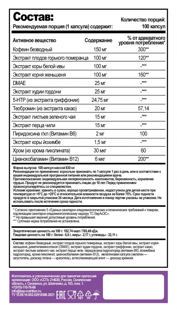 Размер одной порции : взрослым принимать по 1 капсуле 1 раз в день или в соответствии с Вашей индивидуальной программой питания или рекомендациями врача.